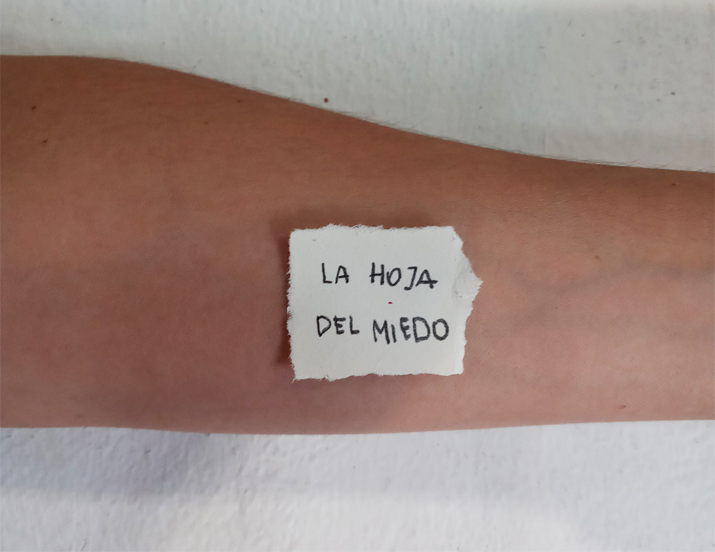 Mayormente mi trabajo es autobiográfico, aquí el territorio del texto juega con el territorio del cuerpo. En este trabajo pensé en las marcas visuales del cuerpo traducidas como heridas. Esas que quedan por alguna razón inexplicable y no se van. Mis procesos se disparan muchas veces o empiezan a partir de algo cotidiano, por ejemplo: una pared con humedad: en el mes de junio de 2021 vinieron a arreglar la pared del departamento donde vivo, dentro de la pared había agua, hongos, manchas. Esto me recordó que cuando tenía 13 años una fuerte lluvia hizo que en el techo de la casa de mi familia en Mendoza filtrará mucha agua. Era de noche y la tormenta muy ruidosa, El techo «se llovía» y la casa se inundaba. Tengo imágenes en mi cabeza muy nítidas de ese episodio. Todo eso me hizo pensar en “las marcas” y “los mapas”. Nuestros cuerpos como mapas de acciones. Un comentario, una situación, un error, algo aparentemente intrascendente, todo eso puede ser disparador para hacer obra. Lo cotidiano y lo íntimo siempre presente.